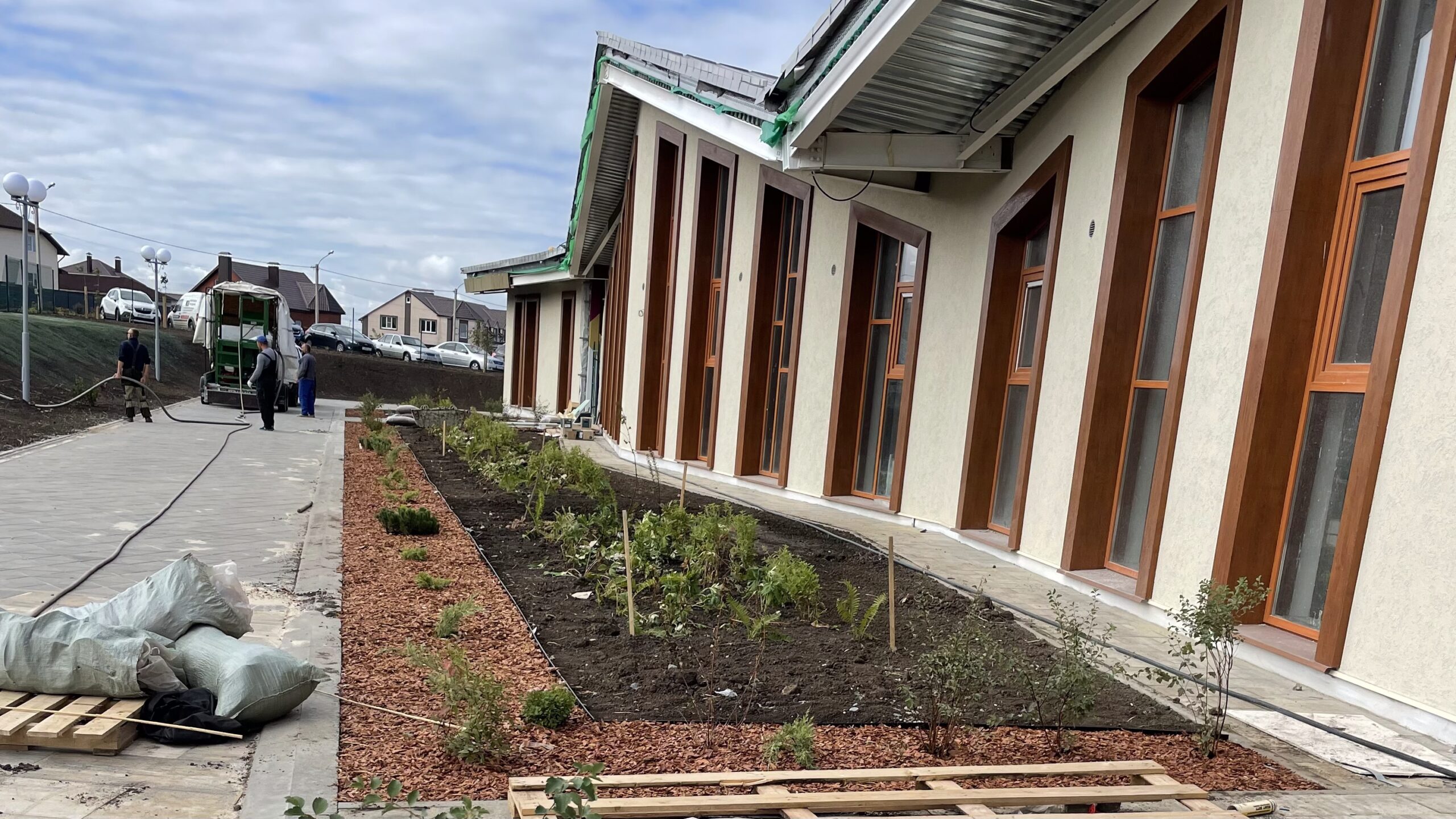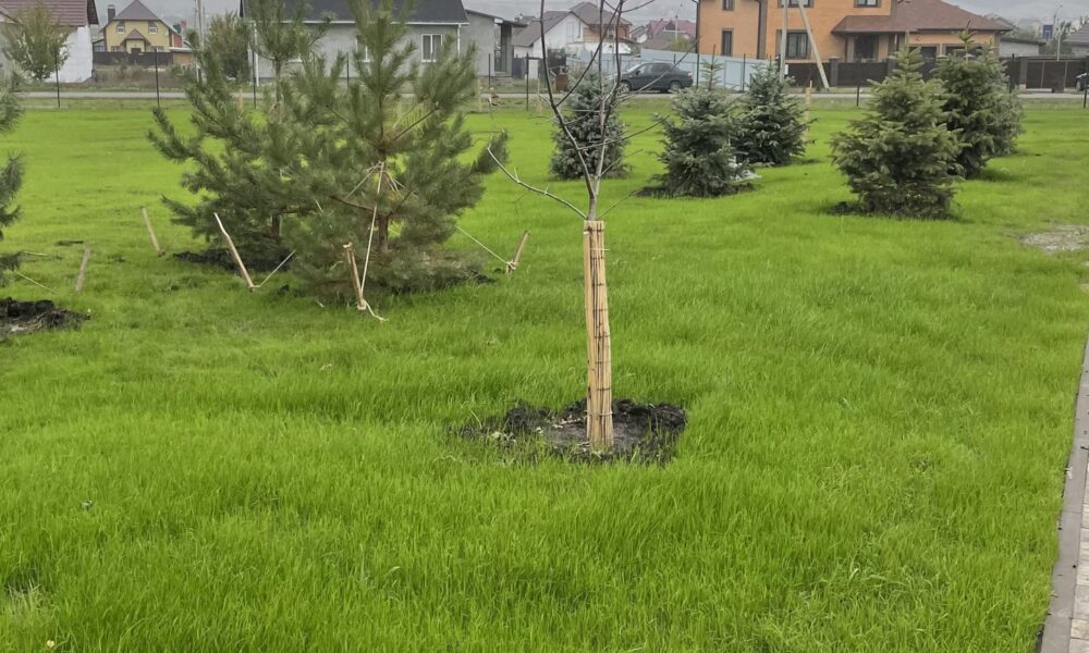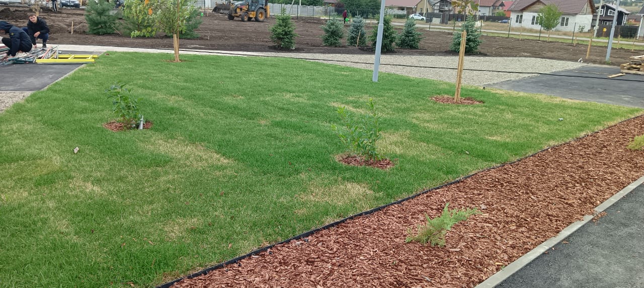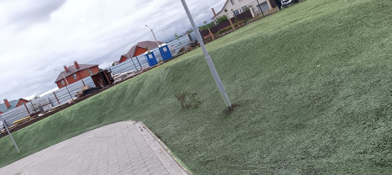 • Засеяно собственной установкой по гидропосеву, полгектара газона!