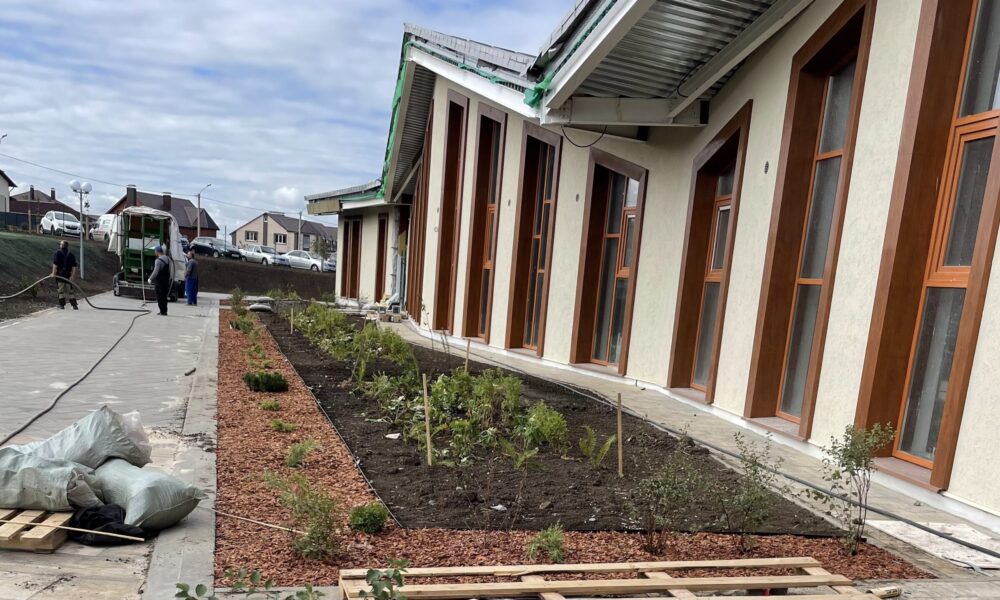 В новой свежепостороенной школе в п. Разумное, выполнили комплексное озеленение прилегающей территории!