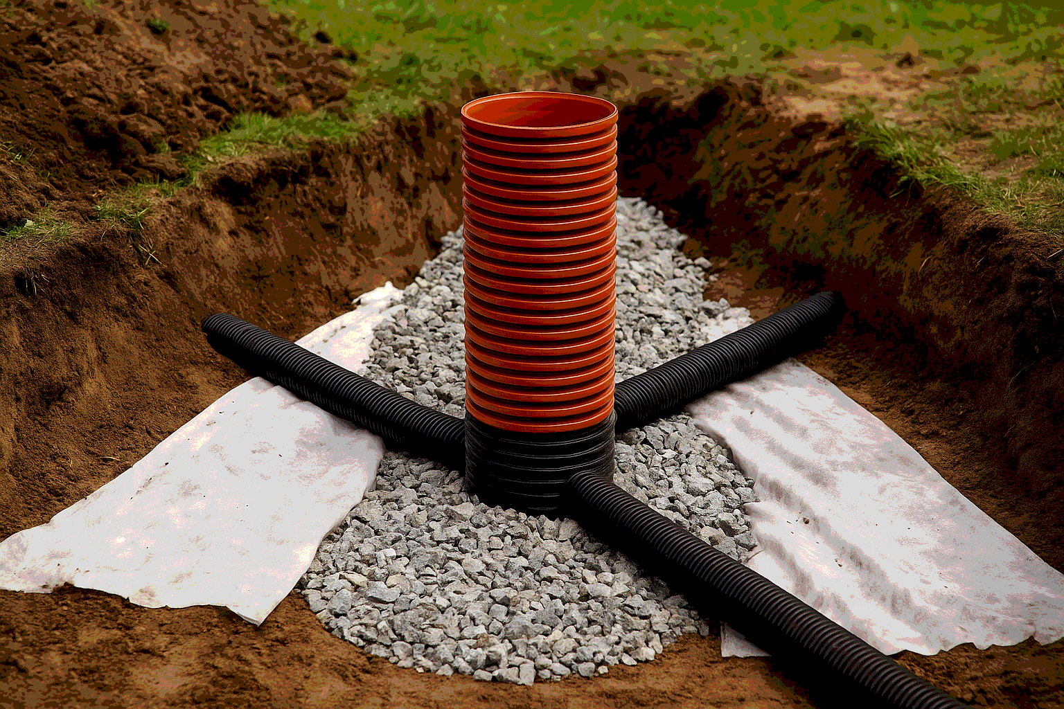 Все коммуникации скрыты под землей. Используем прочные трубы и геотекстиль, исключающие заиливание. Работаем «под ключ»: от гидрогеологии до вывода ливневки в коллектор или канаву. Гарантия — без риска для вашего ландшафта.